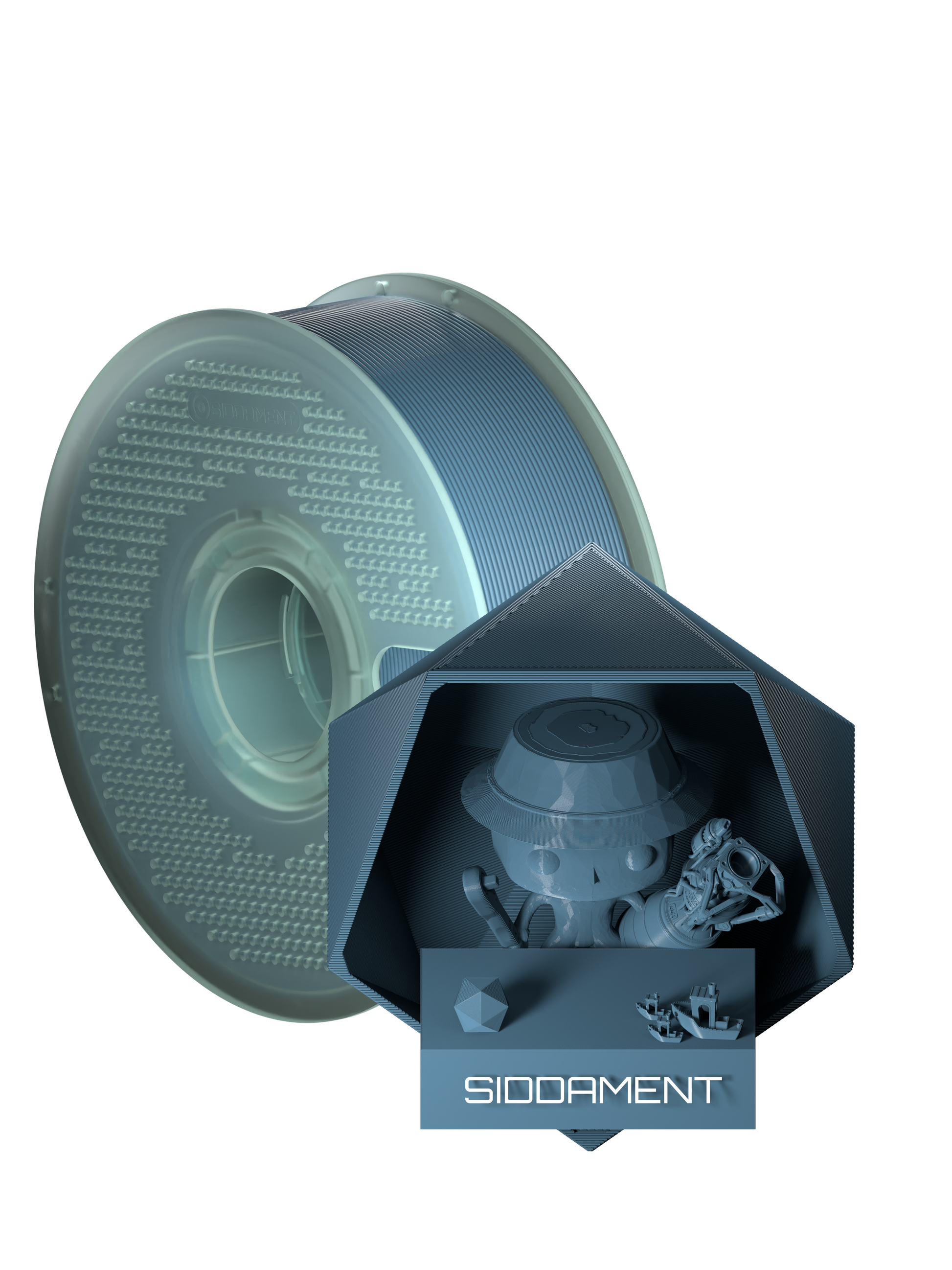 The PETG spool is translucent blue.